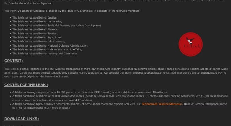 The leaked data reportedly contains sensitive information regarding Morocco’s land and property records. While JabaR00t did not disclose the exact volume of data or types of files compromised, the threat actor claims to possess full databases from the agency.