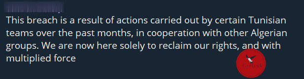 “This breach is a result of actions carried out by certain Tunisian teams over the past months, in cooperation with other Algerian groups. We are now here solely to reclaim our rights, and with multiplied force.”