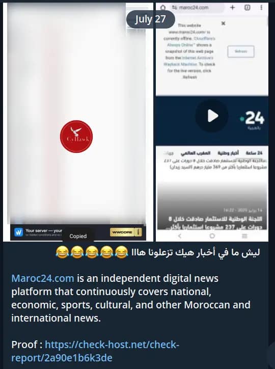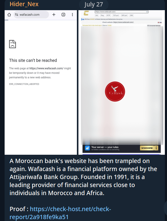 Tunisian hacktivist group Hider_Nex, known for its aggressive stance in the ongoing Morocco-Tunisia cyber feud, has claimed responsibility for another round of cyberattacks on key Moroccan websites.